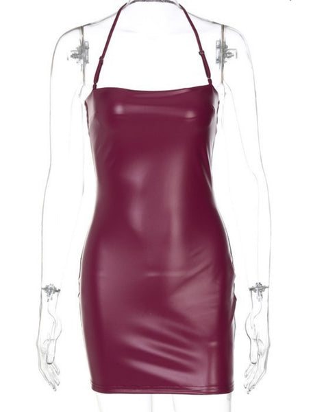 Turn heads in this ultra-sexy burgundy faux-leather mini dress. Designed with a sleek, body-hugging fit, adjustable spaghetti straps, and a glossy finish that shows off every curve. The soft stretch material keeps it comfortable while still giving that bold, going-out look. Perfect for nights out, birthdays, clubs, or any event where you want the spotlight on you.